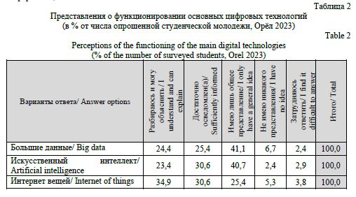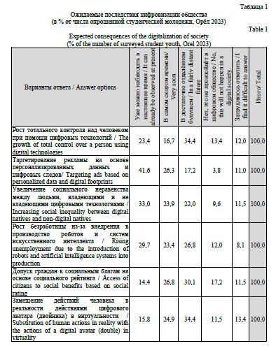 Merkulov, P. A., Alekseenok, A. A., Prokazina, N. V. et al. (2025), Tsifrovoe obshchestvo v subektivnykh otsenkakh studencheskoy molodezhi [Digital society in the subjective assessments of student youth], RANEPA, Orel, Russia, EDN: ZBUSOK. (In Russian)