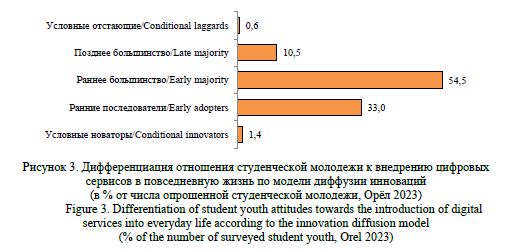 In the modern information society, the process of digitalization has become a key factor determining the dynamics of social changes, having a profound impact on the lifestyle, value system, and behavioral strategies of various social groups. The relevance of this study is due to the need to identify the nature and direction of changes in the social practices of student youth caused by the digitalization process. The empirical basis of the study includes a vast array of data obtained from a comprehensive sociological survey conducted among students in the city of Oryol in 2023. Quantitative methods of questioning were used to objectively reflect the diversity of views, attitudes, and behavioral reactions of young people to the digitalization of their environment. The purpose of this work is to comprehensively study the transformation of social strategies among students in the context of digitalization of everyday life, identify key trends and patterns of this process, and determine possible directions for further development of social relations in a digitalized society. The study aimed to analyze the attitudes of young people towards digital technologies, determine their level of digital literacy, examine their behavioral practices in the digital environment, and identify existing problems and contradictions associated with digitalization. The scientific significance of the study lies in an in-depth understanding of the nature of social changes that occur under the influence of digitalization, which allows us to expand the theoretical foundations of youth sociology and the informatization of society. The practical significance is determined by the possibility of using the obtained results to develop effective educational programs aimed at improving the digital literacy of young people, as well as to formulate state policy in the field of digitalization of education and the social sphere.