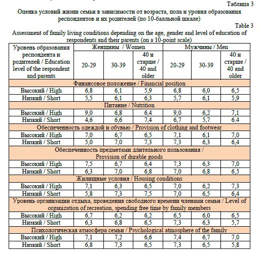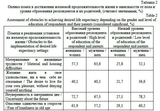 The study of education as a factor influencing various aspects of self-preservation behaviour is due to its role in exacerbating or alleviating inequalities in physical, social, and mental health. Particularly relevant is the study of the relationship between health characteristics and the educational level of family members in age dynamics, which expands the understanding of the determinants of self-preservation behavior and is important in the context of the implementation of family and demographic policy aimed at strengthening the values of family and active longevity. The results obtained from the analysis of data from the comprehensive sociological study 'Demographic Well-Being of Russia', which was conducted in ten regions of Russia between 2019 and 2020, demonstrate a non-linear relationship between the age and education level of children and their parents, and indicators of attitudes towards individual life expectancies, the obstacles to achieving them, the assessment of living conditions, family life and health. A stable correlation was found between the level of education and indicators of the subjective assessment of obstacles to achieving the desired life expectancy (which were rated higher by more educated people than by their less educated peers), as well as existing problems in respondents' families (which were, on the contrary, given lower ratings by respondents with a higher level of education). Contradictory results were obtained with regard to attitudes towards desired and expected life expectancy, assessment of living conditions and self-assessment of health. These results were characterised by age and/or educational differentiation, indicating the need for additional quantitative and qualitative research aimed at expanding understanding of the influence of educational level on individual aspects of self-preservation behaviour, taking into account age dynamics.