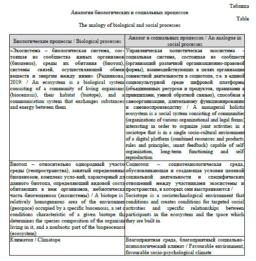 The relevance of this study stems from the search for effective forms of interaction in solving social problems. The authors see a holistic management ecosystem as such a form. The scientific problem lies in the insufficient study of the self-organizing aspects of functioning. A combination of interrelated methods was used: questionnaires, interviews, document analysis, and observation. The methodology is based on the analogy of the structure of biological and social ecosystems, as well as biological and social processes. The concept of a sociotope is introduced, and a conclusion is drawn about the importance of the sociotope in substantiating the indicators of the sociological measurement of ecosystems: “self-organization”, “controllability”, “synergy”, and “cooperativity” in the processes of maintaining the integrity of holistic social management ecosystems, similar to natural ecosystems. Based on the conducted research, the influence of self-organization on the sustainable integrity of a holistic social ecosystem and its controllability is determined. The characteristic features of management ecosystems were identified in the ecosystem of the Children's Rights Commissioner of the Chelyabinsk Region using the example of the implementation of the project “Social Theater for Children Registered on Various Types of Registers”. Based on the results of a mass survey, it is concluded that the high level of self-organization in the implementation of projects in the two small cities (64% and 79%) is due to the density of social interaction, and the low level of self-organization in the two large cities (47% and 42%) is due to the high degree of formalism in building joint work.