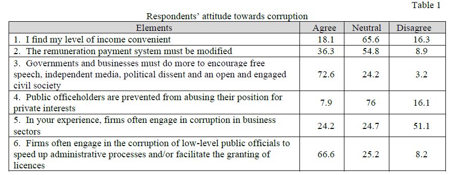 Behavioral origins of distinctions in employees’ attitude towards corruption