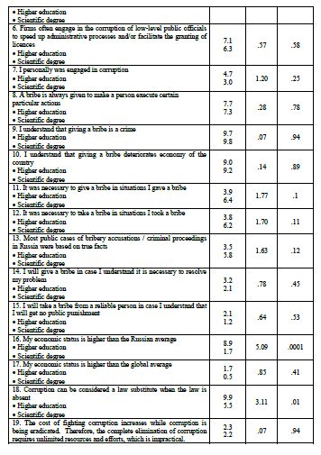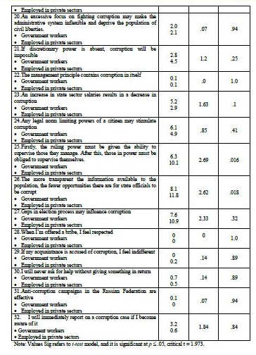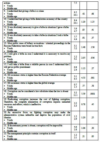 Purpose. The study examines the behavioral determinants that explain why successful and well-paid employees may become involved in corrupt practices. It aims to identify how attitudes toward corruption differ across age groups, education levels, occupations, and subjective economic status among employees working in the Russian Federation. Methods. The research is based on Descriptive Decision Theory as the conceptual foundation for explaining regularities in individuals’ choices. It employs a mixed-methods design, including semi-structured interviews, participant observation, and surveys, with a sample of 256 respondents employed in the Russian Federation (not all of Russian origin). The data were analyzed through thematic analysis as the primary ethnographic method. Given the size and heterogeneity of the Russian labor market, the sample used in this study requires additional clarification regarding its representativeness. The 256 respondents included in the research do not claim to statistically represent all employees in the Russian Federation; rather, they form a purposive sample focused on capturing behavioral patterns among economically active, legally compliant, and socially integrated workers – groups most relevant to analyzing the paradox of corruption among successful employees. Accordingly, the general population for the study is intentionally narrowed to employed individuals with stable income and established career trajectories, which allows for a more accurate examination of behavioral factors influencing attitudes toward corruption. This approach ensures conceptual, rather than statistical, representativeness by aligning the characteristics of the sample with the theoretical objectives of the research. Results. The findings reveal distinct patterns among several groups: youth and middle-aged employees, private-sector and government workers, individuals with higher education and those holding scientific degrees. Behavioral features associated with Prospect Theory – such as anchoring, loss aversion, and risk-seeking – serve as explanatory mechanisms for differences in corruption-related attitudes. This study addresses the central paradox that successful, socially integrated and well-paid employees – individuals who, according to classical economic and legal assumptions, have the least incentive to engage in corruption – are nonetheless vulnerable to corrupt behaviour. This challenges the traditional view that corruption is primarily driven by economic need or lack of resources. Instead, it suggests that behavioral factors, cognitive biases, and situational perceptions may outweigh rational cost-benefit calculations. It is essential to identify and explain this contradiction in order to understand why corruption persists, even among those who seemingly have the most to lose. Scientific significance. This study represents the first research of this type using Russian empirical data while integrating behavioral insights with national legal norms and regulatory practices. It provides an interdisciplinary perspective on how human behavior, convenience, facilitation, and productivity interact within corruption contexts. The results offer guidance for designing future regulatory measures aimed at reducing corruption levels.