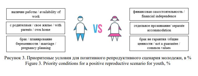The article reveals some features of reproductive attitudes of student youth as preferred parenting scenarios that determine the connection between the behavior of young people and the need for childbearing. The aim of the study is to determine the reproductive attitudes of student youth, to identify the conditions and factors of their formation. The key research method was a questionnaire survey of students of Moscow universities (N = 475, target sample, pilot study in spring 2025). Semi-structured interviews (n = 10) were used as an additional method. The novelty of the obtained results is the systematization of favorable conditions that are considered by student youth as significant for childbearing. The differences in how young people perceive the conditions for having a child (e.g. financial situation, availability of housing, reliability of a partner) are presented. This made it possible to analyse the data in detail according to the gender characteristics of the respondents. In particular, young men are more likely to focus on having children within the framework of a family scenario; for girls, on the contrary, the importance of official marriage as a guarantee of long-term cohabitation is somewhat devalued, emphasizing shared values with the child's father. The influence of “uncertainty about the future” on the formation of young people's reproductive attitudes was established, the main sources of which are the difficulty of choosing a partner for a long-term relationship and the inability to meet social expectations. The novelty of the obtained results is the established inverse relationship between such a personal reproductive choice of young people as voluntary childlessness and the low level of acceptance of this choice among other young people. It is also concluded that positive experiences of parental family are perceived by young people as natural conditions of growing up, which do not create the need to implement compensatory (in relation to experience) models of reproductive behavior. Moreover, among young people from large families, the recognition of the influence of family patterns on the formation of reproductive attitudes (three or more children) is higher, which can be considered a predicate for a shift towards the popularization of successful large families. The practical significance of the obtained results is related to the possibility of their use for developing the design of a study on the transformation of reproductive attitudes of young people and increasing the effectiveness of demographic policy.