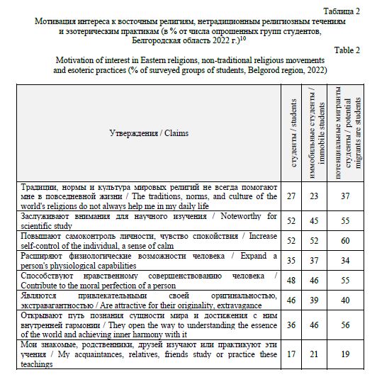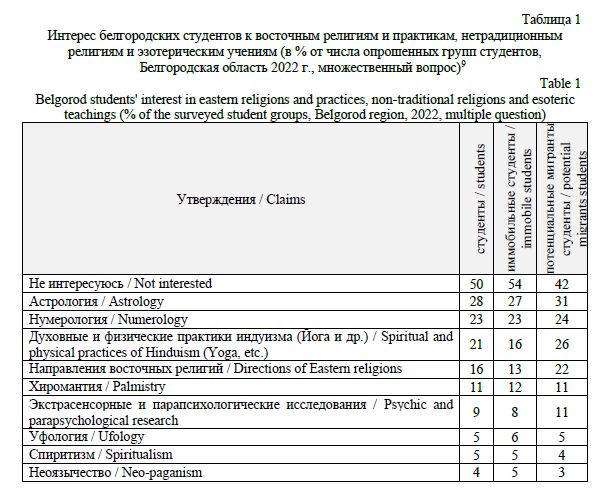 Лютенко И. В. Нетрадиционные религиозные взгляды белгородских студентов // Научный результат. Социология и управление. 2025. Т. 11, № 3. С. 44-60. DOI: 10.18413/2408-9338-2025-11-3-0-3.