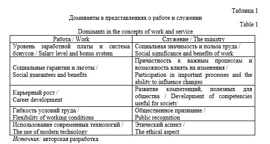 Социальные представления о работе и служении как факторы мотивации молодых специалистов