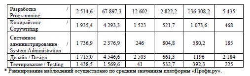 Структура предложения труда фрилансеров платформ «Профи.ру» и «Хабр.Фриланс» в сферах удаленной работы